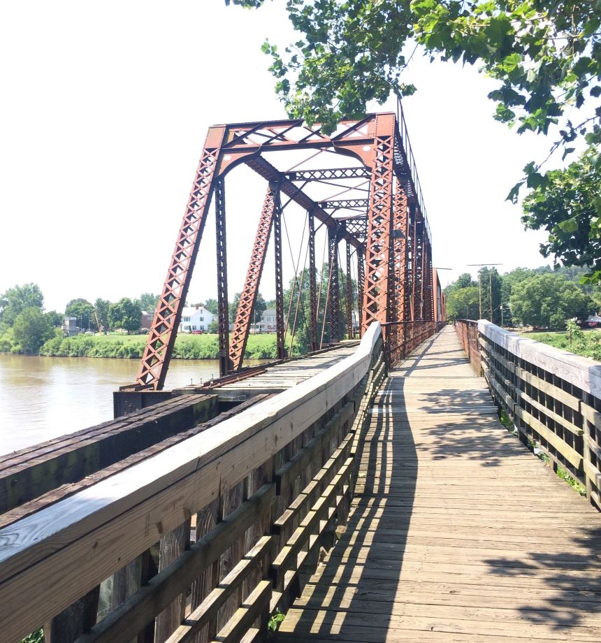 BELOW, scenes from Where the Stars Cross: the venerable Chicago, the magnificent Tiffany stained-glass dome at the Chicago Cultural Center, historic Harmar Bridge, the legendary Levee House building, at riverfront in Marietta, and the century-old Harmar Tavern.